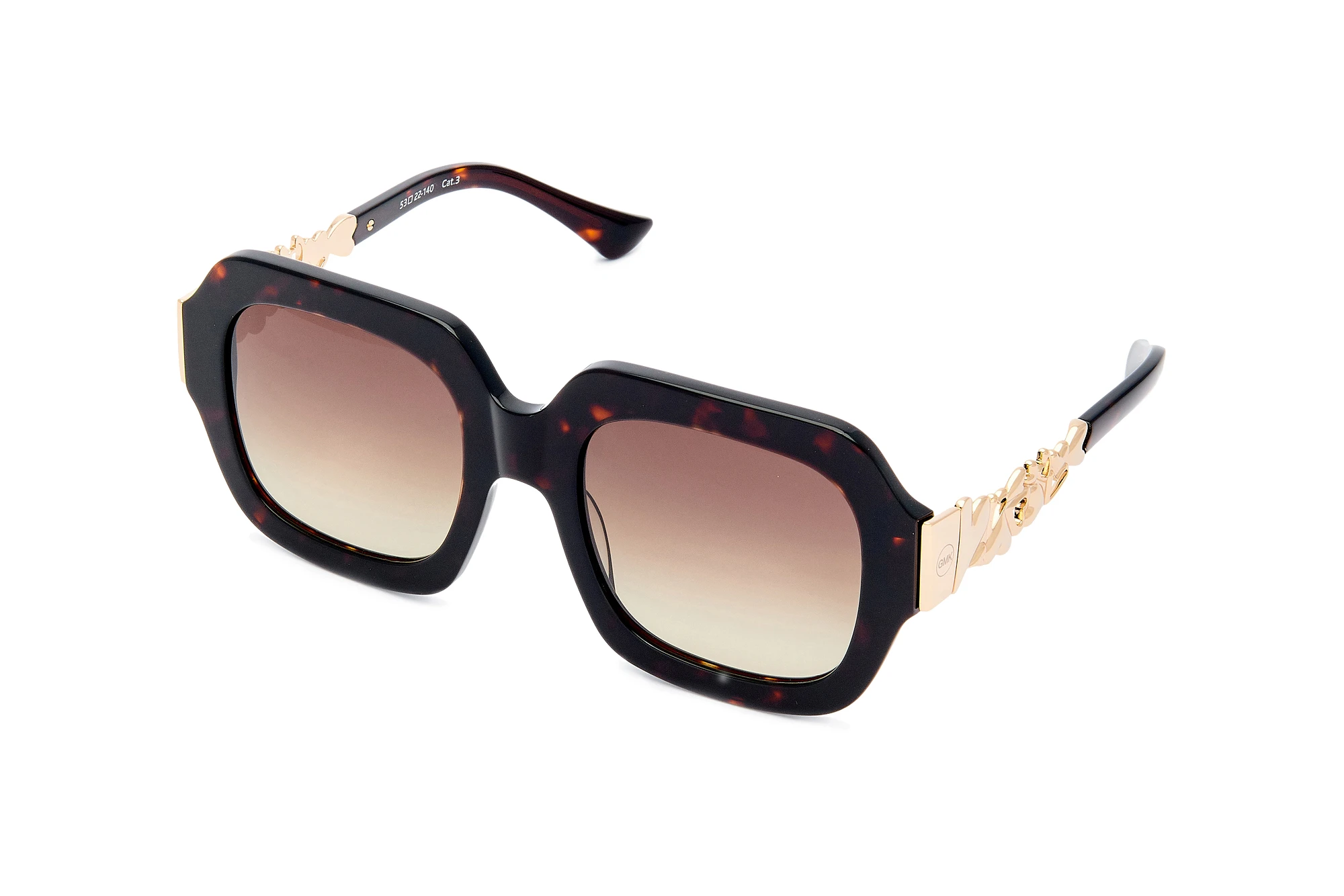 Die GMK Gala ist nicht nur aufgrund der limitierten Verfügbarkeit etwas Besonderes. Benannt nach der Frau von Salvador Dalí bewegt sich diese quadratische Sonnenbrille mit Bügeln, die zum Teil aus glänzenden Herzchen bestehen, auf einem schmalen Grat zwischen Fashion und Kunst. Wie Haute Couture auf einer Gala präsentiert sich diese Damensonnenbrille als mutiges Statement für selbstbewusste Frauen, die gerne ihre Persönlichkeit optisch unterstreichen. Die Tortoise-Optik in dunklem Havanna ist das ist das Sahnehäubchen auf der Design-Torte der GMK Gala.