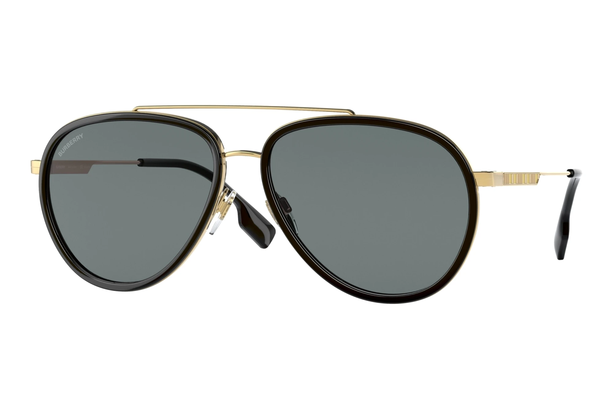 Schnörkellos und stark in Material und Verarbeitung: Diese Herrenbrille steht für edles Design und Selbstbewusstsein. Brille ist In. Entsprechend beliebt ist Vollrand, denn man bekommt am meisten Brille für sein Geld. Dabei geht es nicht nur um die Belastbarkeit, sondern auch um die Sichtbarkeit von Material und Design, die hier von allerhöchster Güte sind. Dieser Inbegriff der Pilotenbrille aus dem Hause Burberry zeichnet sich durch die charakteristischen großen Gläser und die dünne Fassung aus. Nicht nur im Cockpit eines Flugzeuges ist das Modell ein sicherer Volltreffer. Der edle Metallrahmen erlaubt die filigrane Linienführung und schafft eine außergewöhnliche Leichtigkeit in der Erscheinung. Zudem sind Metallbrillen quasi unverwüstlich – robust, flexibel und korrosionsbeständig. Goldfarbene Brillen wirken immer edel und sind momentan schwer in Mode. Sie lassen sich zu jedem Outfit kombinieren und lassen Dich strahlen. Dass die Farbe Grau immer passt, gilt auch im Bezug auf Sonnenbrillengläser. Sie passen zu allem, was der Kleiderschrank hergibt und kommen nie aus der Mode. Optimalen UV400 Schutz für Deine Augen bietet diese Markensonnenbrille natürlich auch. Die polarisierenden oder „polarisation“ Gläser, hier standardmäßig vorgesehen, sind normalen Gläsern weit überlegen. Durch die spezielle Technik werden irritierende Lichtreflexe minimiert. Du siehst dadurch gestochen scharf. Ob im Straßenverkehr oder auf der Piste, nicht nur die Farben sind intensiver, auch Deine Sicherheit erhöht sich.